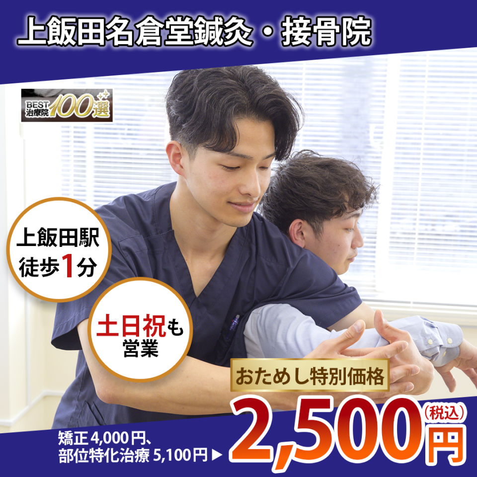 | 四十肩・五十肩のお悩み改善集中コース/部分矯正 | 2,500円 | 5,100円 |